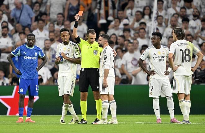 北京时间9月17日凌晨,2025-26赛季欧冠联赛阶段首轮先赛6场。在1场焦点战中,皇马在主场2-1逆转了马赛。本场比赛,皇马队长卡瓦哈尔在比赛尾声不冷静的顶牛撞翻对手被罚下,险些让球队在主场丢分。