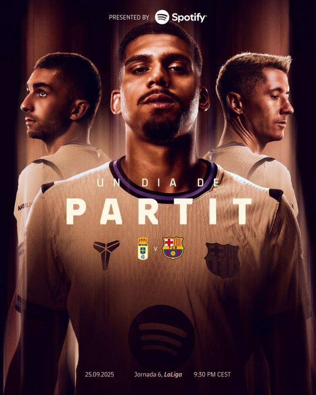 客场挑战奥维耶多!巴萨社媒发布海报:阿劳霍、费兰、莱万在列
