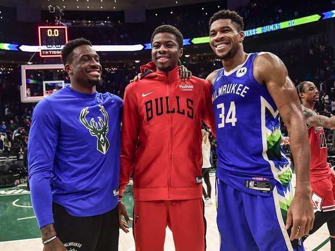 第二名:字母哥兄弟从能力均衡性角度上来看,字母哥兄弟是榜单中差距最大的一组,字母哥的哥哥也是唯一一名依靠“关系户”关系才在NBA站稳脚跟的球员。但是凭借字母哥夸张的个人比赛影响力,字母哥兄弟依旧高居榜单第二,因为字母哥不仅多次拿下MVP,更是现役最好的防守者之一,又曾率领雄鹿队赢得冠军,荣膺FMVP。值得一提的是,不仅字母哥哥凭借字母哥关系在雄鹿队获得稳定位置,字母弟也曾在NBA效力多年,辗转多支球队,遗憾的是三人没能上演同队壮举。
