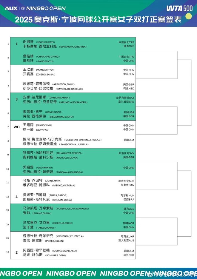 爱奇艺体育免费直播!WTA500宁波站签表出炉:王欣瑜袁悦首轮上演中国德比