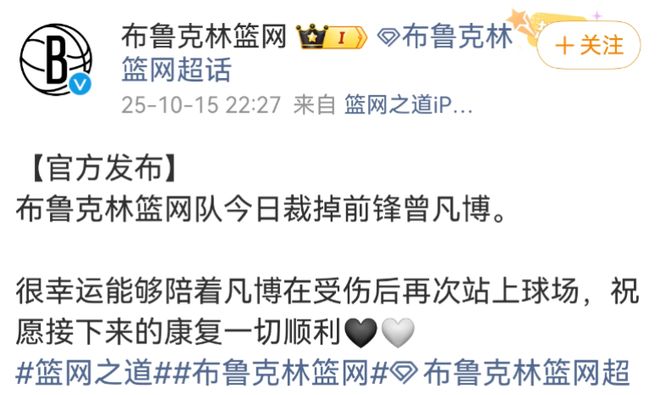 01 篮网梦碎:曾凡博官宣被裁就在今天,布鲁克林篮网队官方宣布,正式裁掉中国球员曾凡博。讽刺的是,这一决定距离他在NBA中国赛的首秀,仅仅过去了三天。这位中国新星只在首场中国赛中获得了10分06秒的上场时间,没有出手得分,仅有1次抢断和3次犯规进账。第二场比赛,他未能获得任何出场时间。