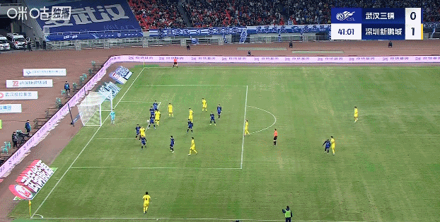 比赛上半场第41分钟,姜志鹏帮助球队制造关键进球;他边线球直接抛到禁区,武汉三镇队后卫头球解围不力,埃杜-加西亚抓住机会高高跃起头球破门!武汉三镇队0-1落后。