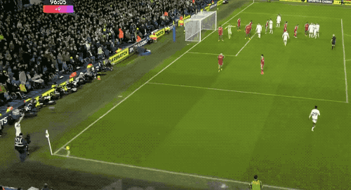 伤停补时第6分钟,场上再次出现进球,这一次,利兹联开出角球,田中碧上演绝平好戏。