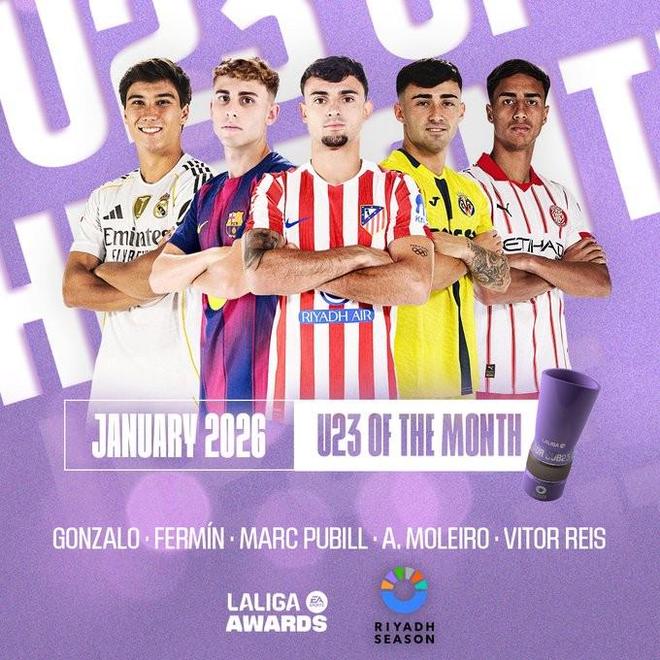 - 西甲 | 西甲1月最佳U23球员候选:贡萨洛领衔,费尔明、莫莱罗入选